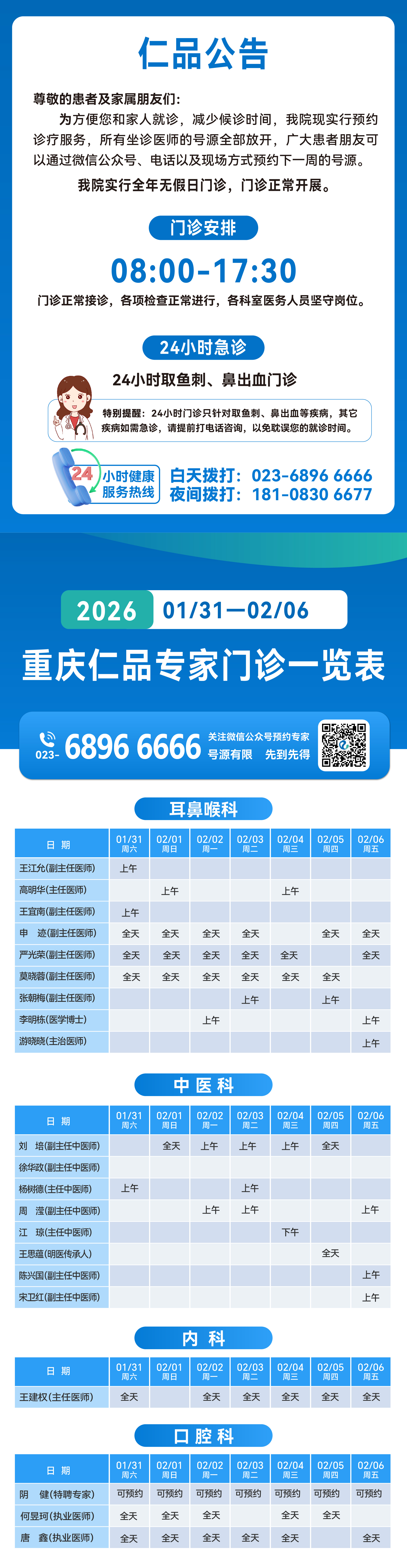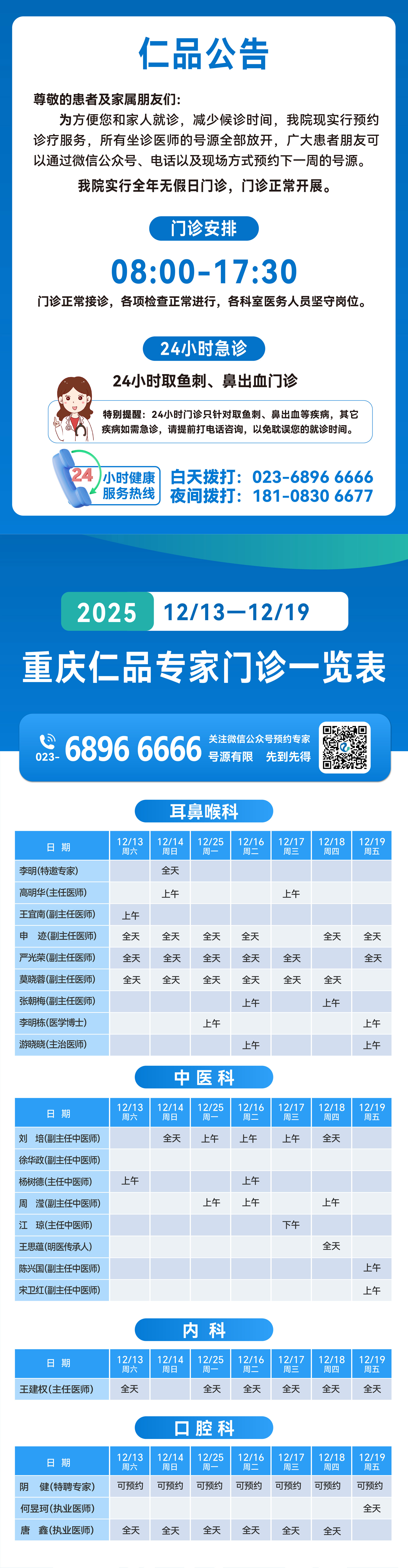 专家出诊表